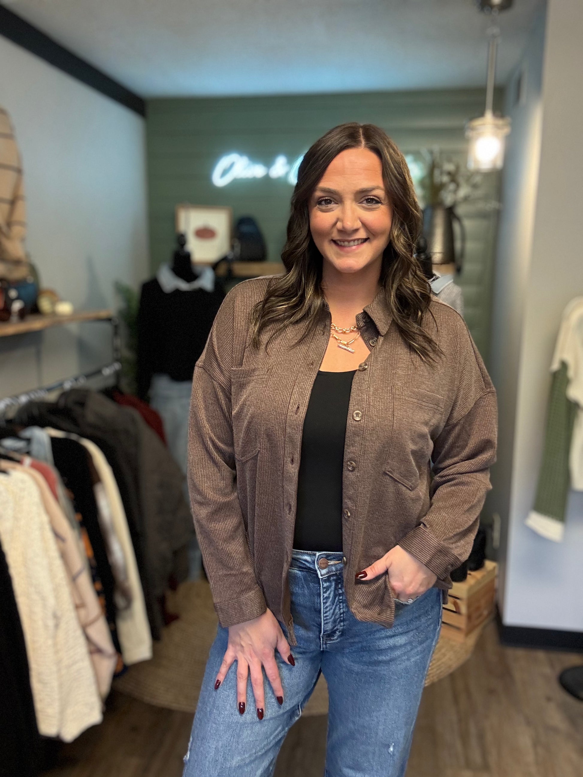 The Carolyn Shacket is your new go-to layer for effortless style. This oversized button-down combines the comfort of a shirt with the warmth of a jacket, featuring eye-catching colored buttons that add personality to any outfit. Perfect for layering over tees or dresses, it transitions seamlessly from casual weekends to relaxed workdays. The relaxed fit flatters all body types while the durable construction ensures lasting wear. Throw it on and instantly elevate your everyday look.