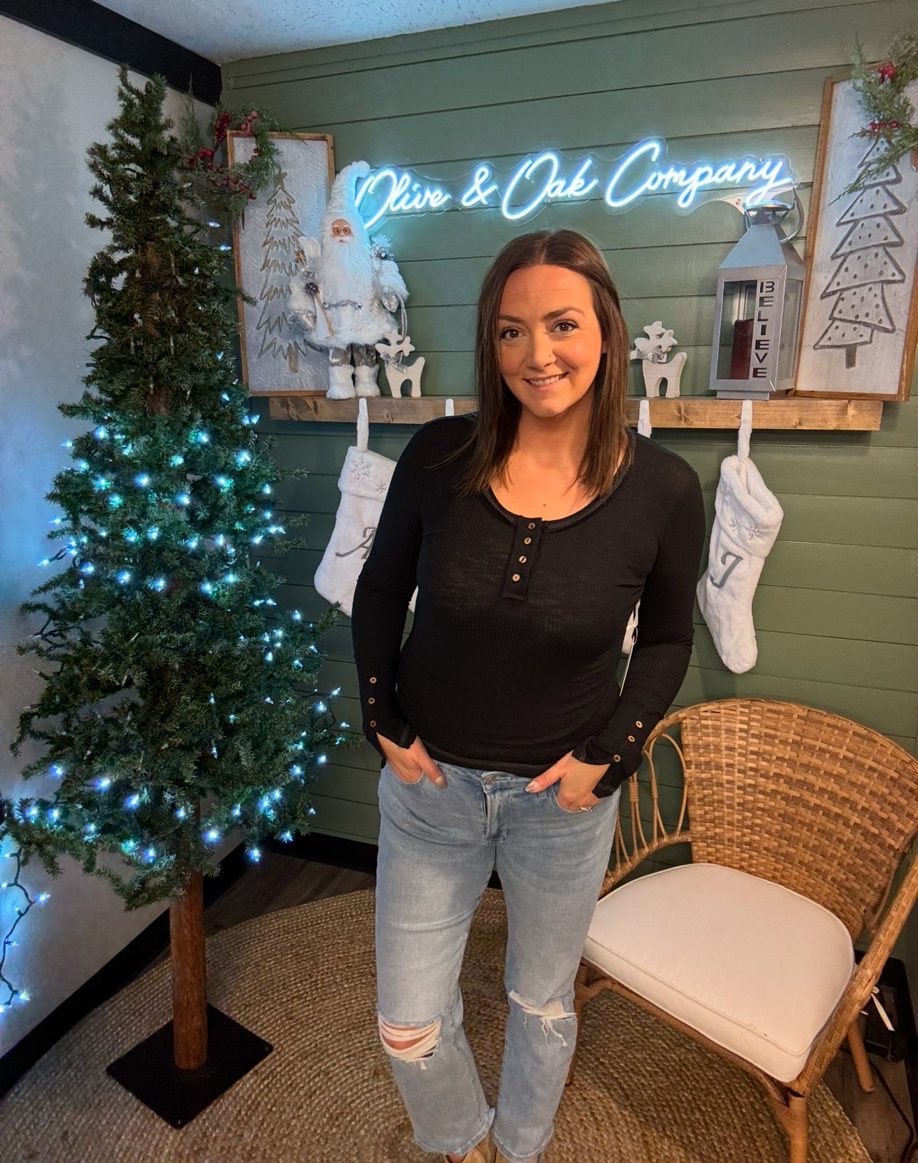 Looking for the perfect layering top? Look no further this top is so cute and perfect! Fits fitted and tts.