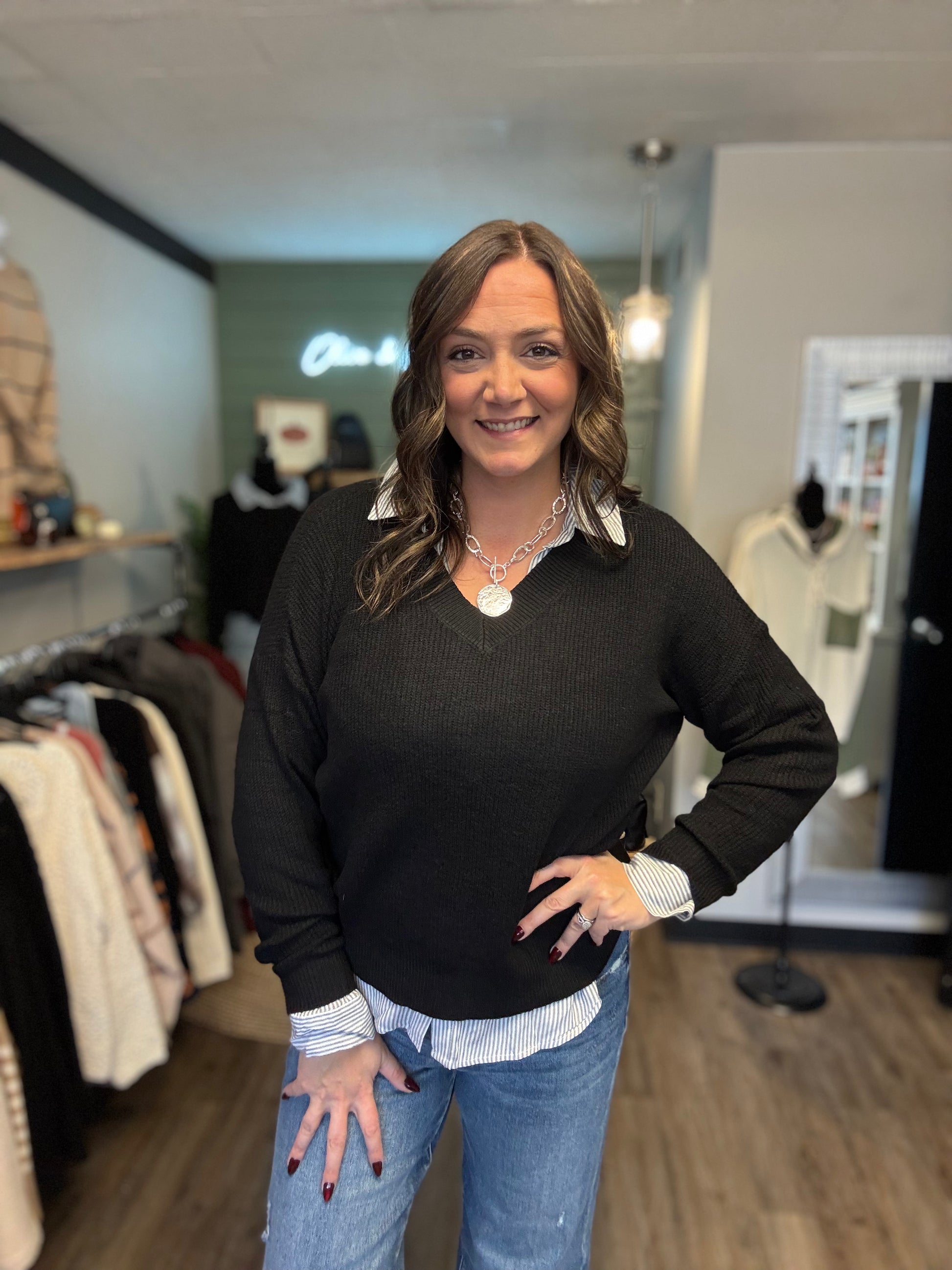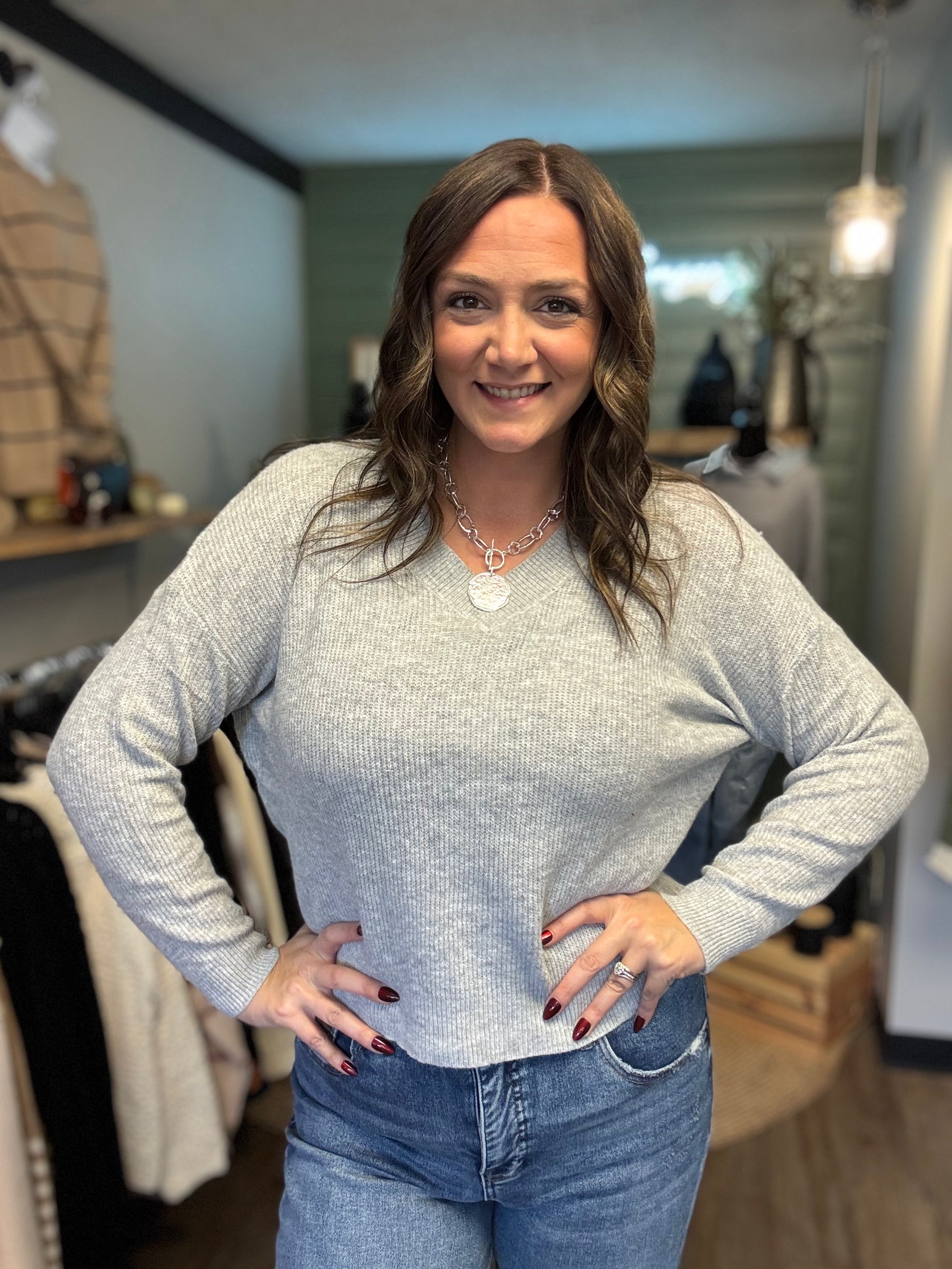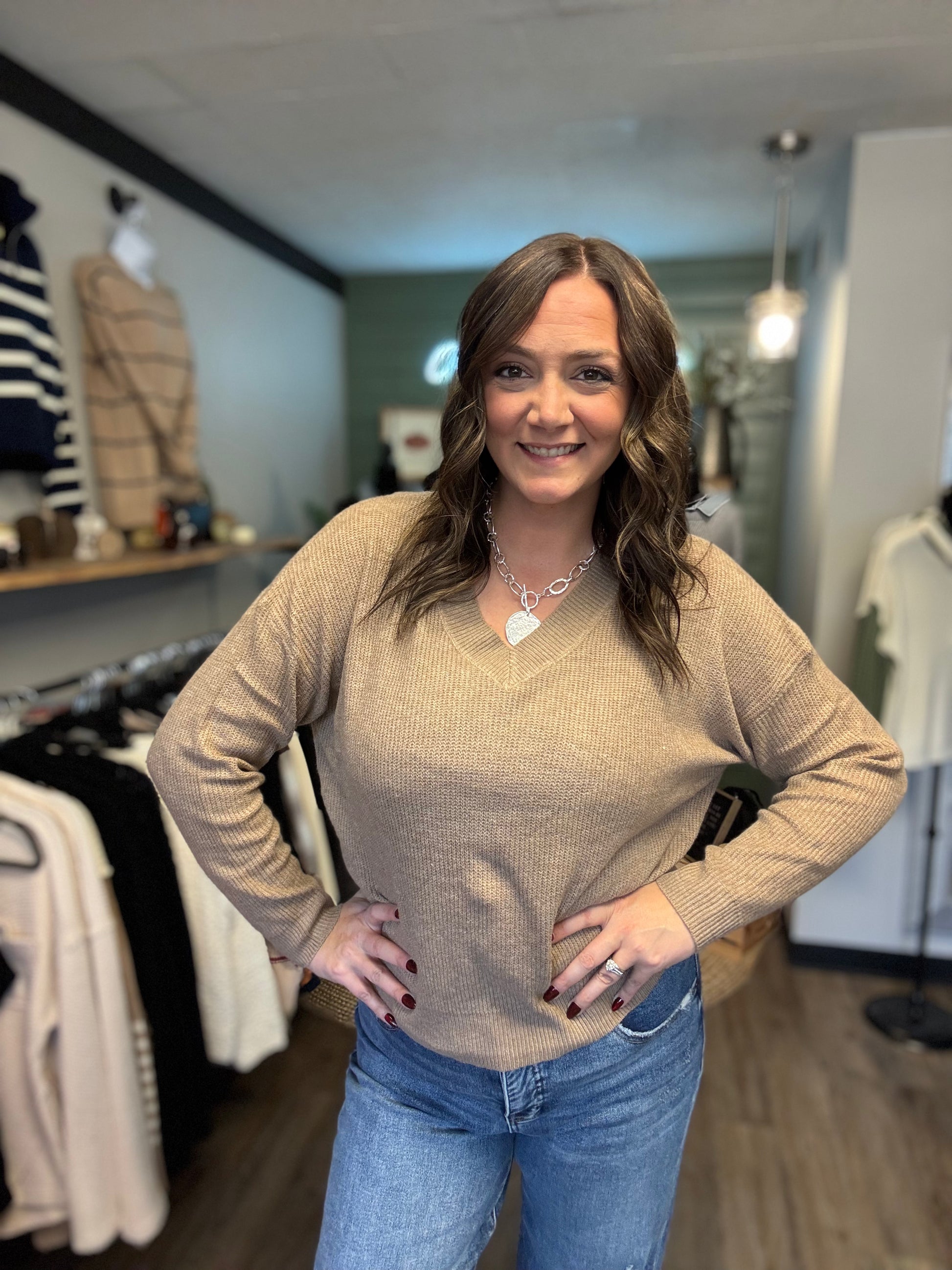 The Jordan Sweater combines effortless comfort with timeless style. This lightweight knit features a flattering V-neck and long sleeves, crafted from a stretchy fabric that moves with you throughout your day. Perfect for layering or wearing solo, it transitions seamlessly from casual weekends to professional settings. The breathable material ensures all-day wearability without bulk, making it an essential addition to any versatile wardrobe. Elevate your everyday look with this go-to piece that delivers both comfort and sophistication.