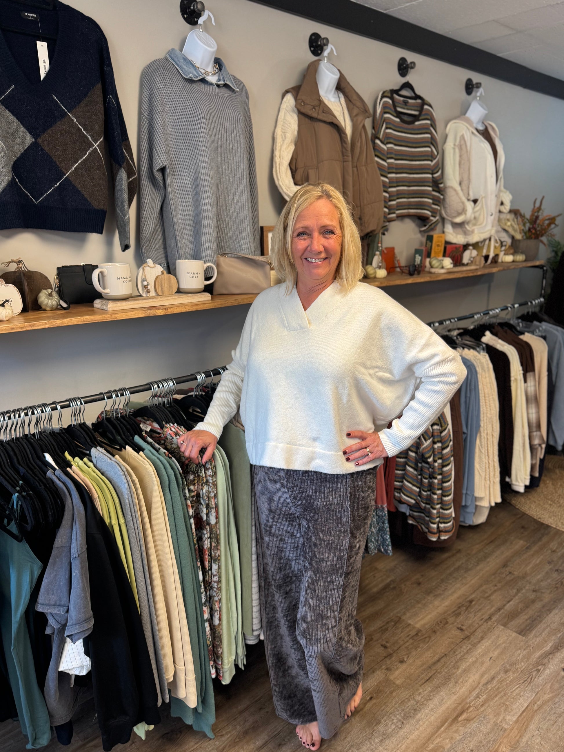 The Kaylee Top features a flattering V-neck and long sleeves with a relaxed fit, making it your go-to choice for comfortable lounging or effortless casual style. Its easy, breezy silhouette offers all-day comfort without sacrificing shape or sophistication. Perfect for unwinding at home or running errands, this top combines cozy softness with versatile fashion.