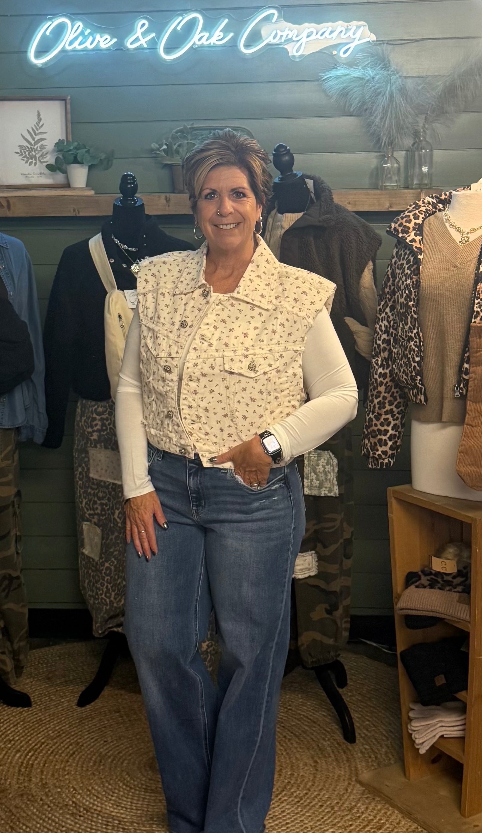 The Mallory Vest is an edgy essential that transforms any outfit with its bold asymmetrical front closure and distressed detailing. Crafted from quality denim, this versatile piece layers effortlessly over tees, tanks, or dresses for instant attitude. Choose between a striking Cream and Pink Floral print for a statement look or classic Medium Wash Denim for timeless versatility. Perfect for adding dimension to your everyday style, The Mallory Vest delivers that coveted vintage-inspired edge with modern flair.