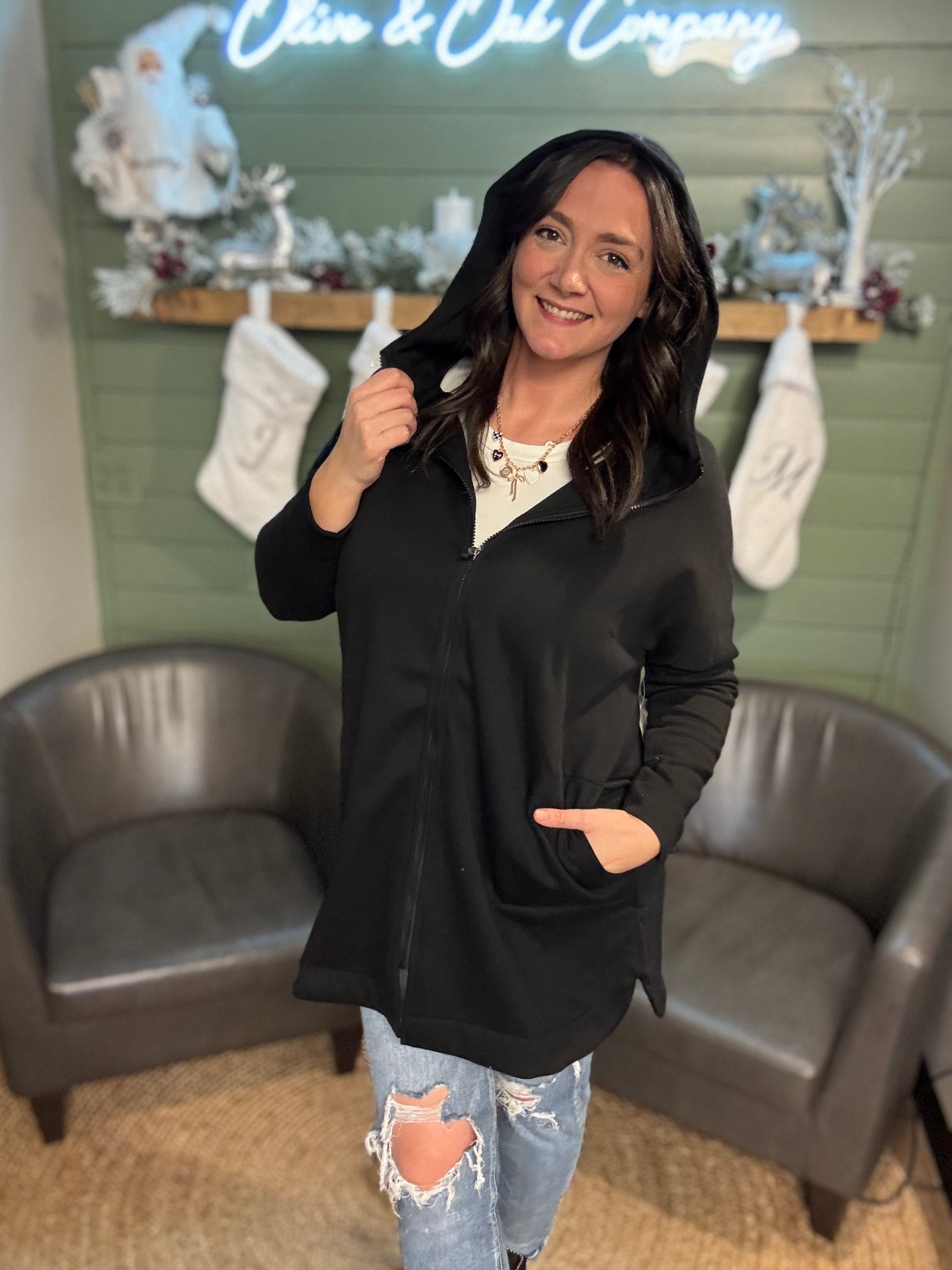 The Peyton Zip Up delivers effortless comfort with its incredibly soft fabric and relaxed fit that moves with you throughout your day. Featuring a convenient hood and full-length zipper, this lined jacket layers beautifully over any outfit while keeping you cozy and at ease. Perfect for casual outings or unwinding at home, it's the go-to piece you'll reach for again and again.