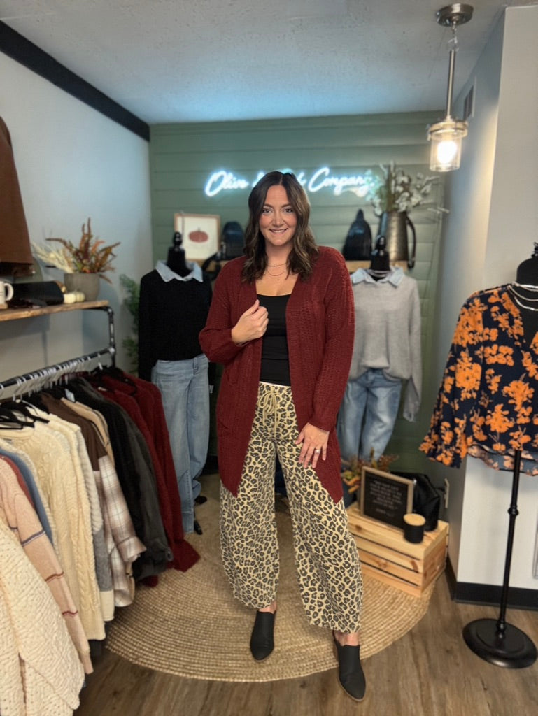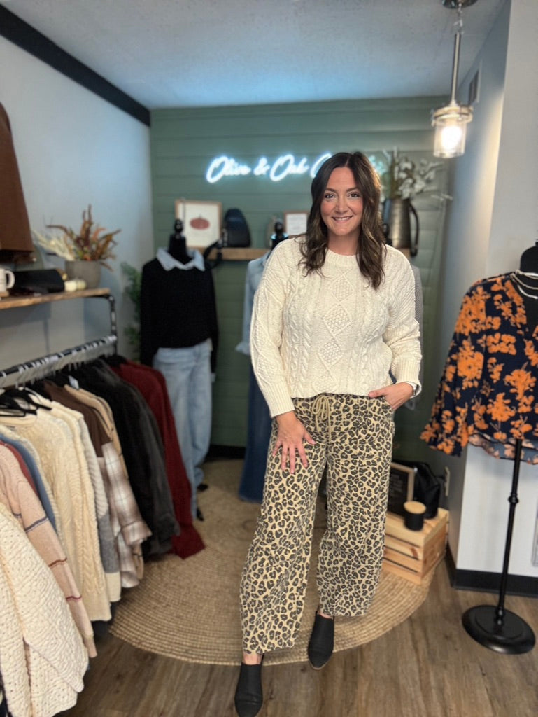 Experience effortless style with The Riley Pants, featuring a bold leopard print and a relaxed barrel fit. Designed with a convenient drawstring waist, they offer both comfort and adjustable fit, staying true to size. Perfect for lounging or casual outings, these pants blend trendy pattern with easygoing wearability to elevate your everyday wardrobe.