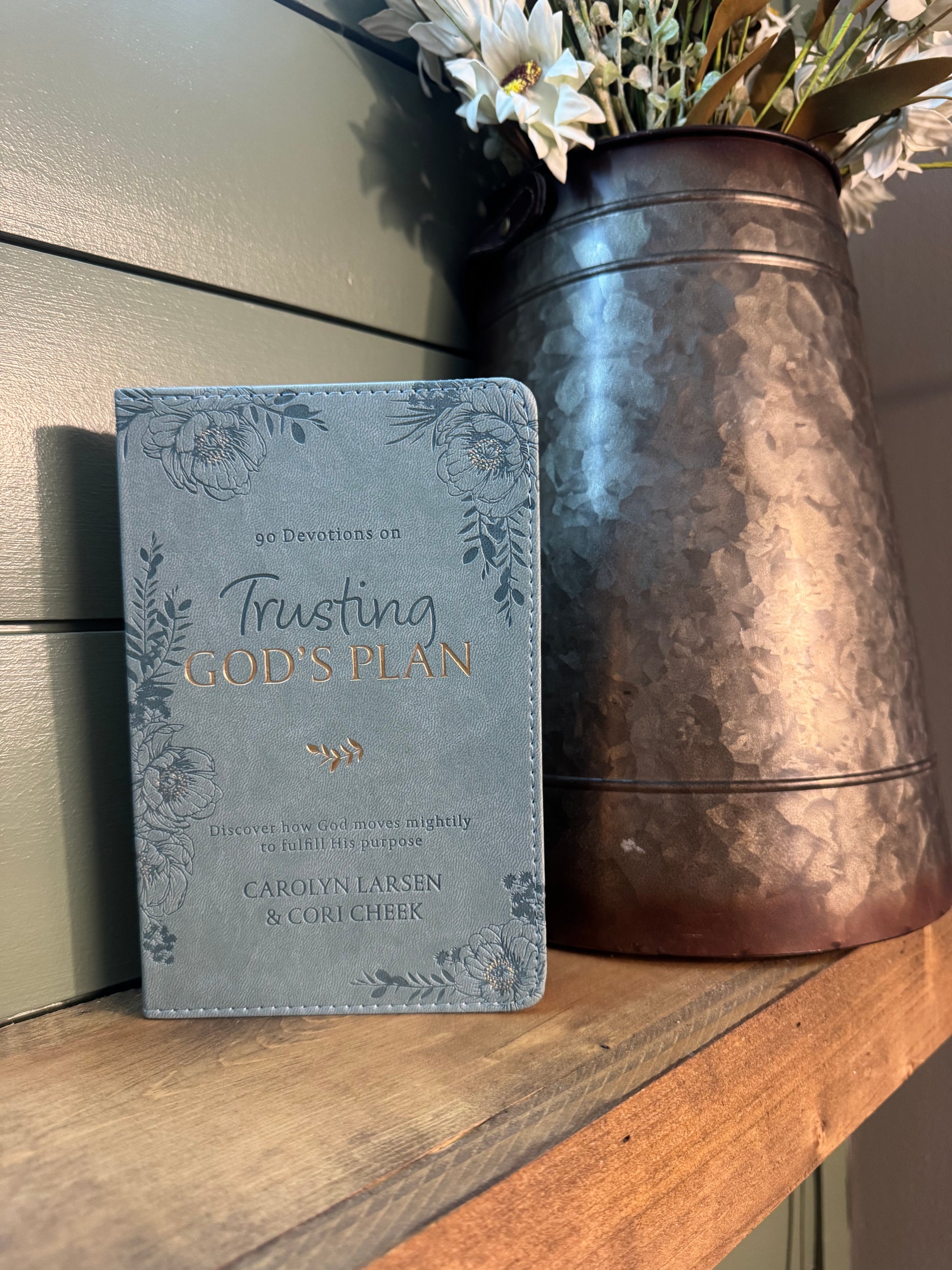 In the Trusting in God's Plan Teal Faux Leather 90-Day Devotional, you will discover how God moves mightily to fulfill His purpose. Authors Carolyn Larsen and Cori Cheek illustrate through 90 devotions that God's plans cannot be thwarted.